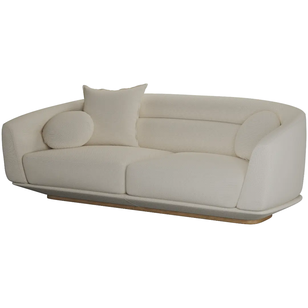 В основе конструкции — прочный каркас из фанеры и массива бука, дополненный резинотканевыми ремнями. Многоуровневое наполнение из трёх видов ППУ создаёт идеальный баланс упругости и мягкости, а пухо-перьевой слой придаёт посадке особую уютность. Ножки из массива бука поддерживают лёгкий, но надёжный силуэт дивана.