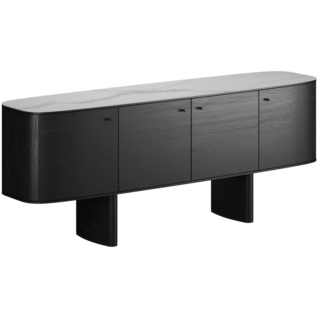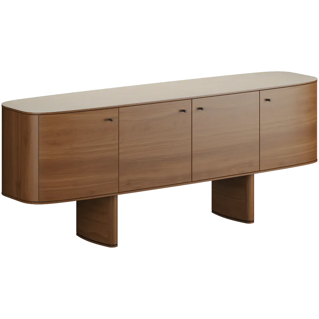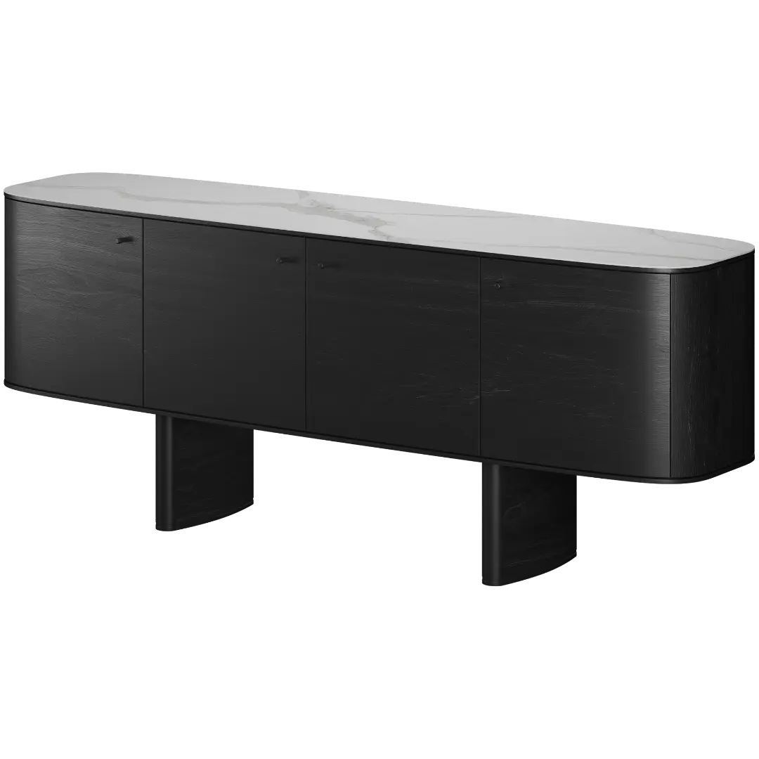 Комод Fabbri — словно кузов элегантного спорткара: строгие линии, плавные изгибы и ощущение движения, даже когда он стоит на месте. Этот комод сочетает в себе изысканность итальянского дизайна и функциональность. Его фасады из шпона (5 вариантов отделки: американский орех, натуральный дуб, морёный дуб, дуб Веллингтон, чёрный) создают тёплую и благородную атмосферу. Верхняя поверхность может быть выполнена из шпона или керамики Laminam, что добавляет современного звучания.