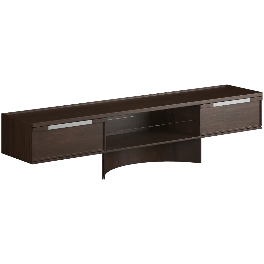 Широкая, но невысокая конструкция позволяет гармонично разместить телевизор и декор, не перегружая интерьер. Два вместительных закрытых отделения скроют всё лишнее, а открытая полка станет удобным местом для техники, книг или элементов декора.