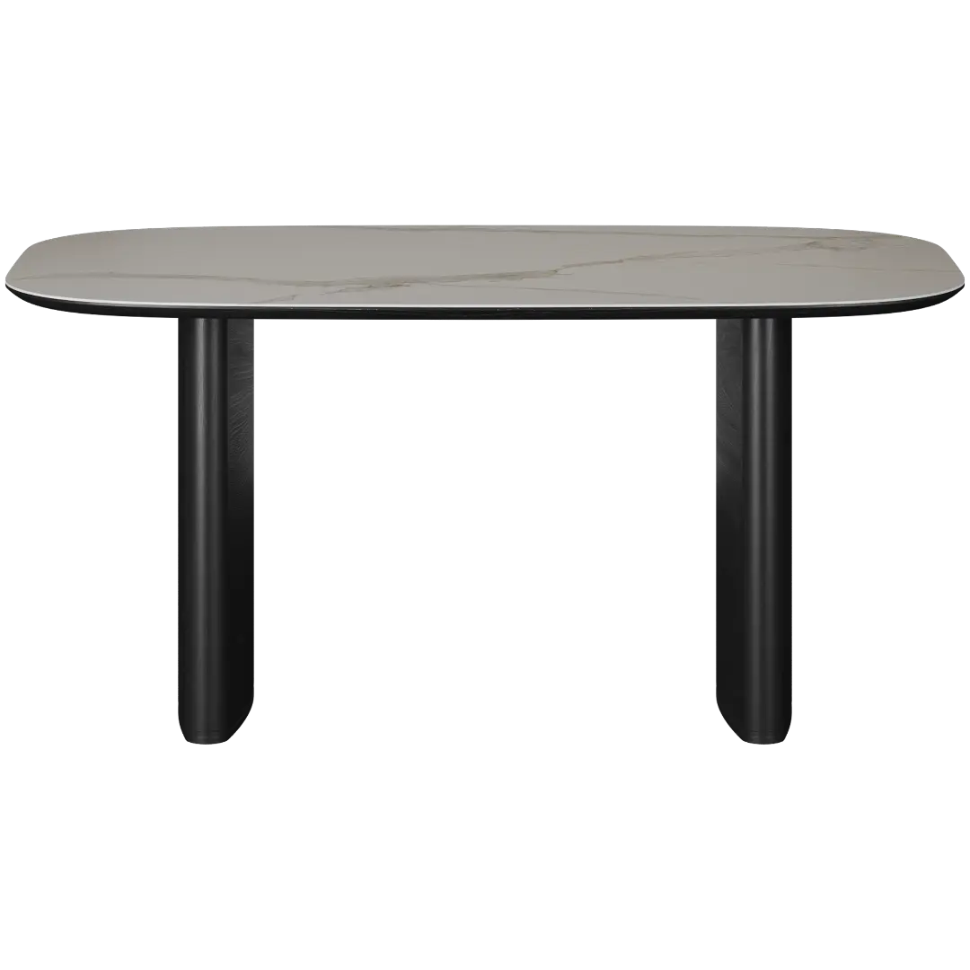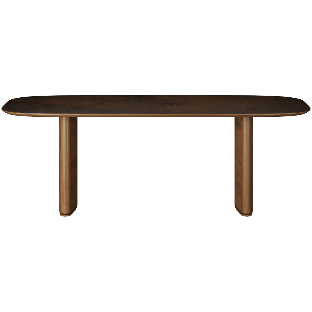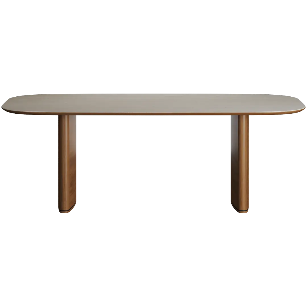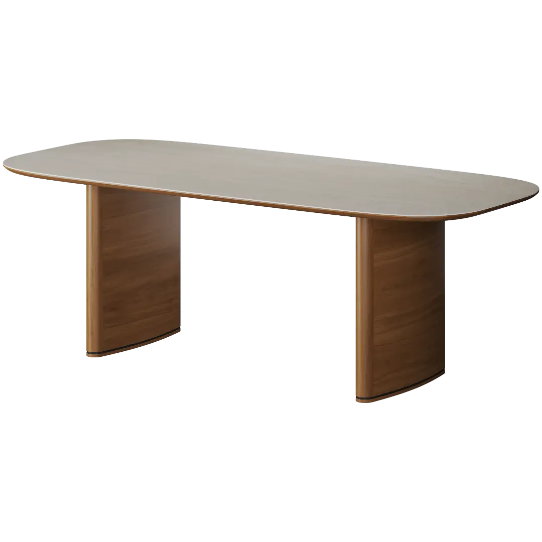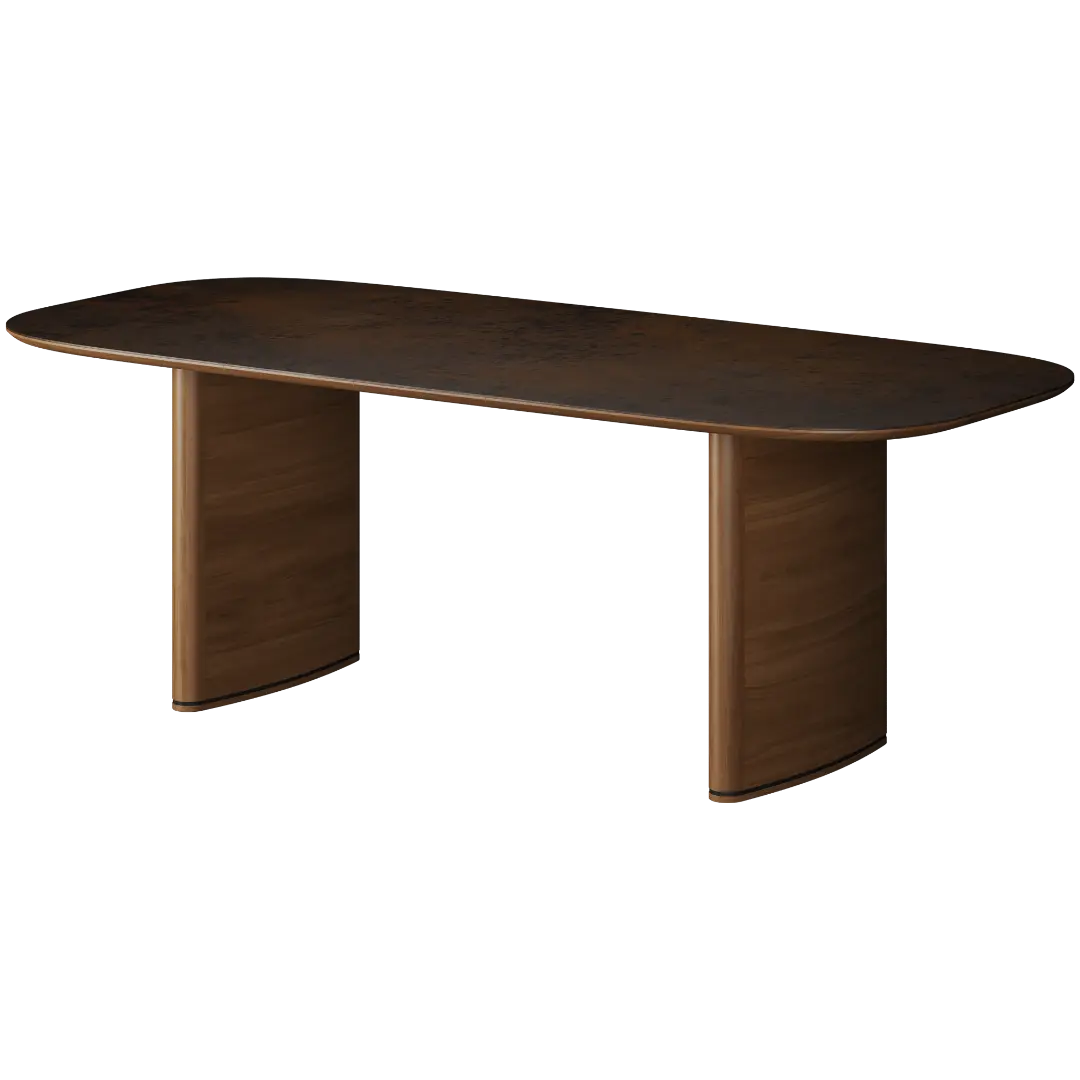 Основание выполнено из шпонированного МДФ с округлыми трендовыми ножками, подчёркивающими современный характер модели. Это стол, который становится центром притяжения, где бы вы его ни разместили — в городской квартире или загородном доме.