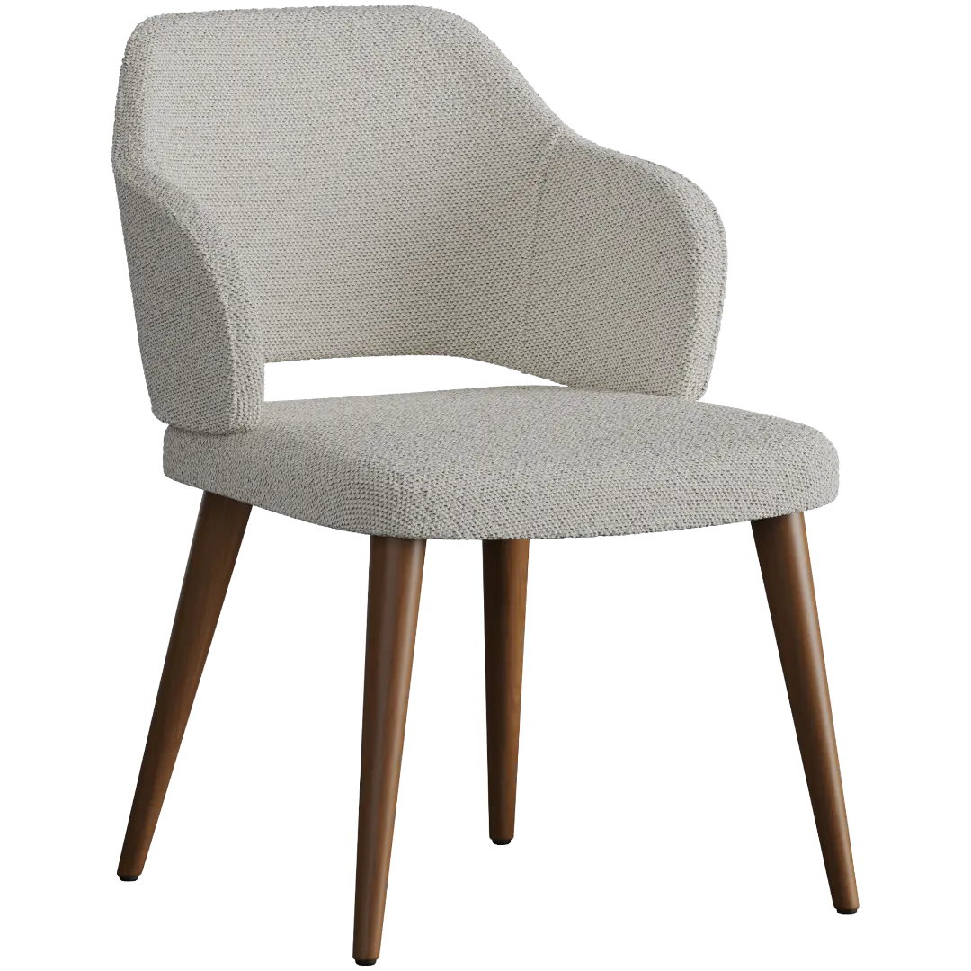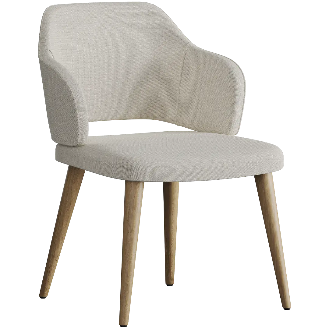 Спинка из мебельной фанеры имеет удобный угол наклона, а плавные подлокотники создают естественную поддержку для рук. Сиденье достаточно широкое и комфортное, чтобы на нём можно было провести весь день — будь то работа, семейный обед или неспешная беседа с друзьями.